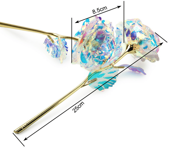 Finally, we cover them in an iridescent holographic coating to make the rose PVC stem and PVC petals sparkle in the light.